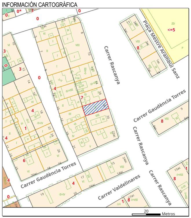 Se puede edificar un máximo de 7 plantas dando 885m2 de vivienda, más garajes y trasteros.